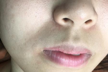 Due to switching to a new camera, there is a noticeable color difference. The top and bottom photos are of the same person. The eczema near the nostrils has also been treated